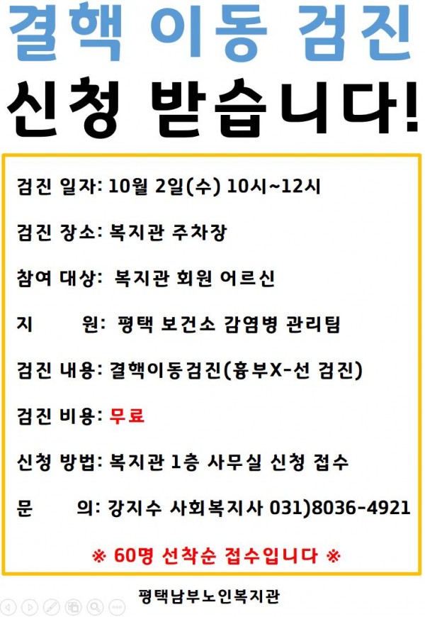 (정서건강) 결핵 이동 검진 안내입니다.