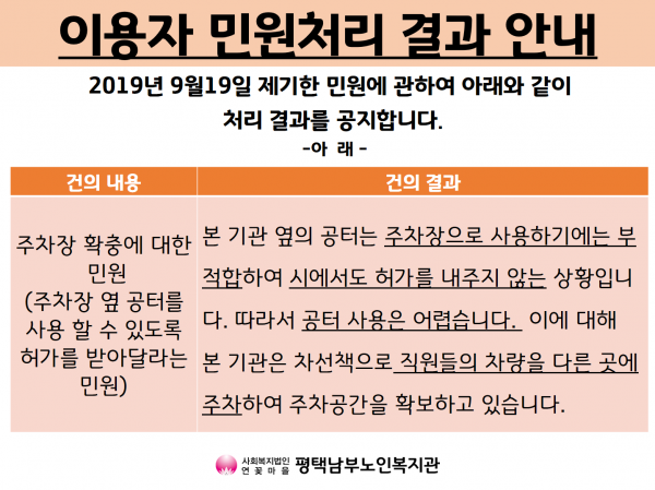 (정서건강) 민원처리결과 안내입니다. 페이지 정보 작성일19-09-23 17:29 조회1,488회 댓글0건 관련링크 이전글 다음글 목록 본문 19년 9월 19일에 제기된 민원에 대한 처리결과 안내입니다. 감사합니다. 댓글목록 등록된 댓글이 없습니다. 이전글 다음글 목록
