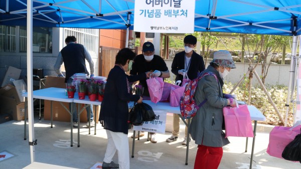 -내용: 5월 8일 코로나 19로 인한 휴관으로 5월 11일 어버이날 기념 행사를 작게 진행하였습니다.