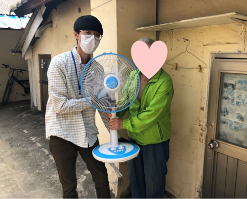 지원물품: 선풍기, 보행보조기, 식료품등( 20가구)