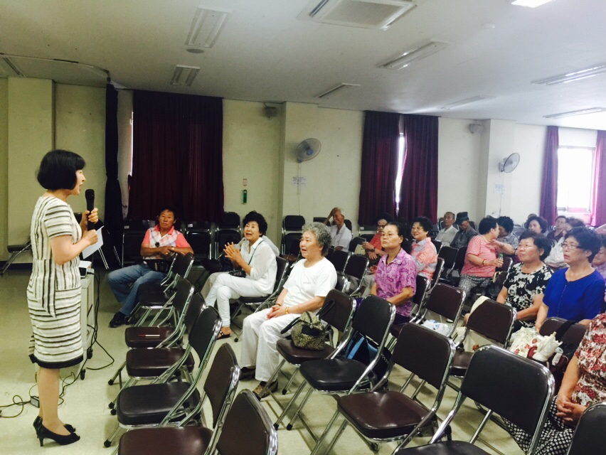 실버인력뱅크에서는 7월 31일 70여명의 어르신 자원봉사자 분들을 모시고 실버인력뱅크 중간평가회를 진행하였습니다. 중간평가회는 인사말, 실버인력뱅크 사업 중간보고, 활동 유형별 활동내용, 하반기 추진일정 보고, 자원봉사 보수교육 순으로 진행되었습니다. 보수교육은 한국은퇴생활연구소 대표로 계시는 박영재 강사님께서 '은퇴 후 사회참여 활동의 이해'와 '커뮤니케이션 일반'을 주제로 진행해주셨습니다.