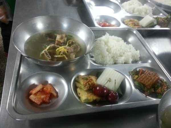메뉴:갈비탕,도토리묵무침,해물파전,포기김치,절편,체리,(쌀과자:포장배식)
