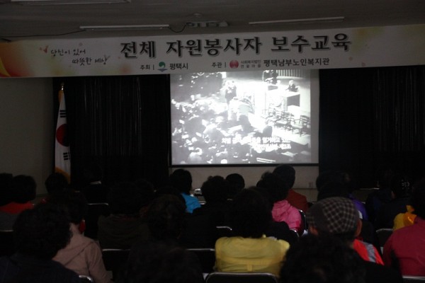 .내용:평택남부노인복지관에서는 정기 자원봉사자 70명을 대상으로 보수교육을 진행하였습니다.