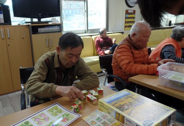 주간보호센터에서 2015년 새롭게 시작하고 있는 특화사업의 하나인 퍼즐 맞추기를 소개하고자 합니다. 명화그림을 6개월여간 맞추는 기나긴 대장정의 퍼즐 맞추기와 간단한 9피스 조각 맞추기로 두 그룹으로 나누어 진행되고 있습니다. 이외 레크레이션 장기알 맞추기, 자원봉사발마사지등 다양한 프로그램들로 어르신들에게 서비스를 제공하고 있습니다.