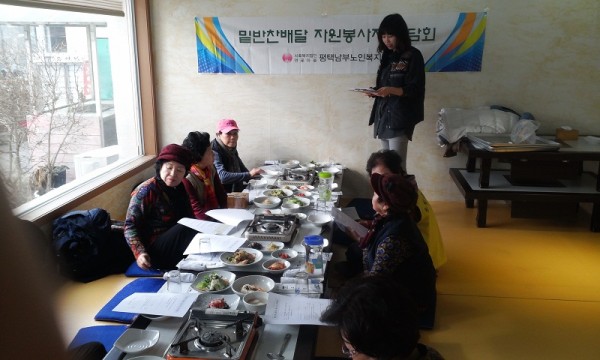 산해진미서비스(저소득 요보호 결식우려 어르신 밑반찬 제공) 서비스 배달 봉사자 11명과 함께 사업점검 및 사례관리를 위한 간담회가 진행되었습니다. 궂은 날씨에도 불구하고 항상 도시락배달을 위해 힘써주신 어르신 봉사자님들께 감사드립니다.