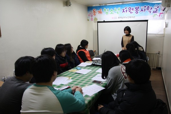 ■ 프로그램소개 : (1~3세대 통합) 홀몸어르신과의 결연봉사활동인 '한지붕,새(新)가족'이 1월 5일 오리엔테이션을 시작으로, 재가어르신댁에서 다양한 놀이프로그램과 함께 청소년들의 봉사활동이 펼쳐지고 있습니다. 청소년자원봉사학교는 청소년들의 봉사활동에 관한 내적동기를 강화하고자 연2회(하계,동계) 방학을 맞이하여 복지관에서 실시되는 특화봉사프로그램입니다.^^