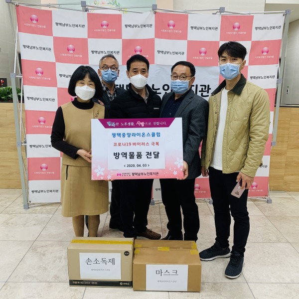 내용: 평택중앙라이온스클럽의 코로나19바이러스 극복 방역물품 전달
