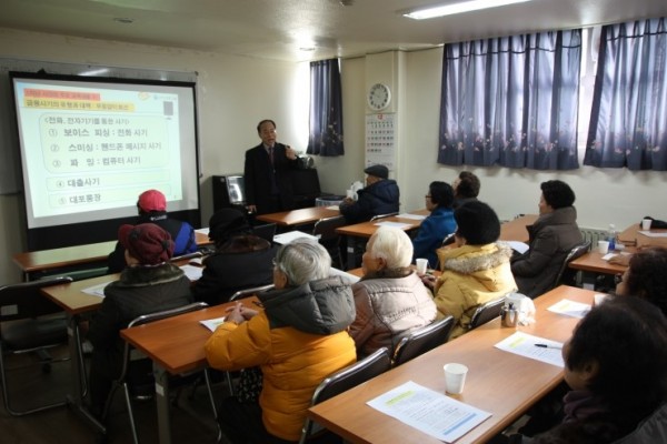 복지관에서는 이용 어르신들에게 바람직한 노후자산관리를 위한 신한해피실버 금융교실을 매주 수요일마다 진행