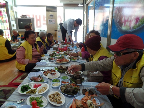 올가을은 삽교호 공원으로 나들이를 다녀왔습니다. 맛있는 회정식으로 회를 드시지 못하시는 분들도 찜게, 소라, 문어 등 맛있는 식사를 하실 수 있었습니다. 야외 공원에서는 레크레이션과 산책, 그리고 시장보기를 하였습니다. 완연한 가을 노을빛 지는 오늘 어르신들에게 좋은 추억이 되기를 바래봅니다.