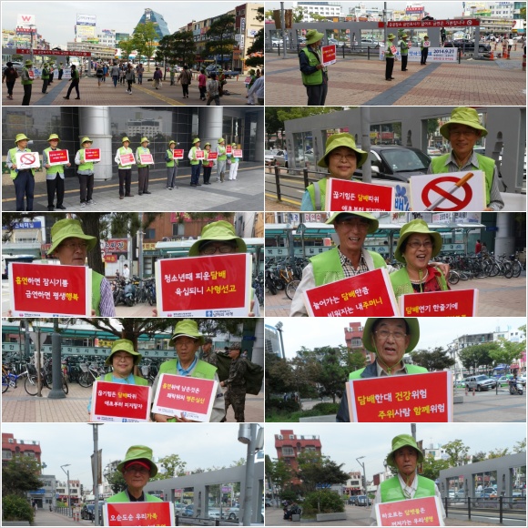 지역문제해결봉사대 남자의 자격팀은 금일 오후 1시 30분 부터 2시 30분까지 1시간 가량 "금연" 캠페인을 열었습니다. 평택역앞 공공장소 흡연자들로 인해 간접흡연의 피해를 보는 사람들과 흡연에 대한 경각심을 주고자 지역 어르신들이 나서서 금연 캠페인을 진행하였습니다. 지역을 사랑하고 더욱 아름다운 미래를 자손들에게 물려주고자 노력하시는 남자의 자격 봉사대원들의 멋진 모습입니다.^^
