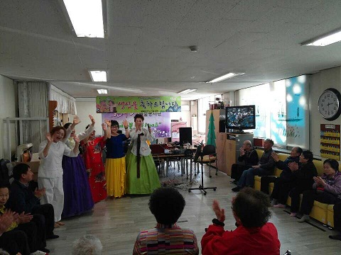 주간보호에서는 3월에 생신을 맞으신 어르신들의 생신잔치를 진행하였습니다. 이**, 김**, 유**어르신의 생신을 축하하기 위해 한우리 공연단에서 우리가락이 어루러진 공연을 펼쳐보이셨습니다. 흔쾌히 시간내어 찾아와주신 공연단 여러분께 깊은 감사드립니다. 그리고 꾸준히 후원에 힘써주시는 비전점 교촌치킨, 동방재단 관계자 외 여러분들에게도 깊은 감사드립니다. 앞으로도 많은 관심 부탁드립니다.