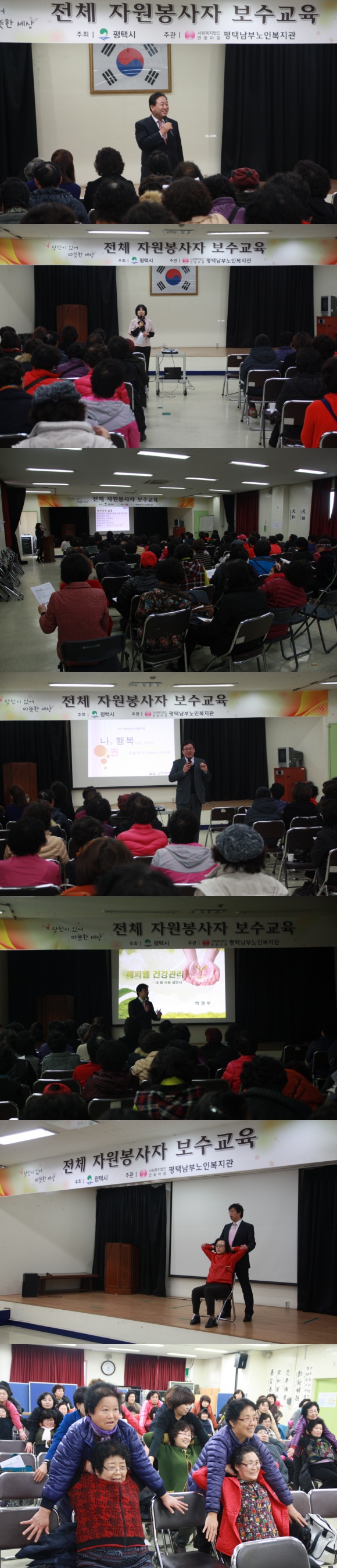 내용: 평택남부노인복지관에서는 분야별 정기 자원봉사자 90명을 대상으로 보수교육을 실시하였습니다.