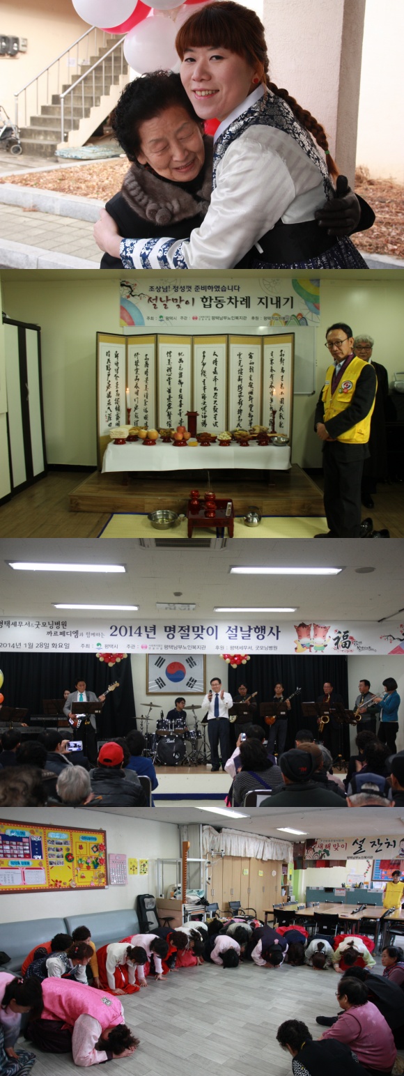○ 내용: 이용어르신 사랑의 포웅, 합동차례지내기, 무료점심 특식제공(떡국), 공연행사 등