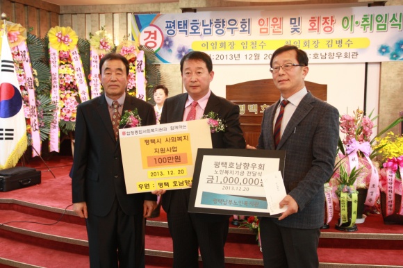 내용: 평택호남향우회에서 2013년 송년을 맞이하여 노인복지기금을 평택남부노인복지관에