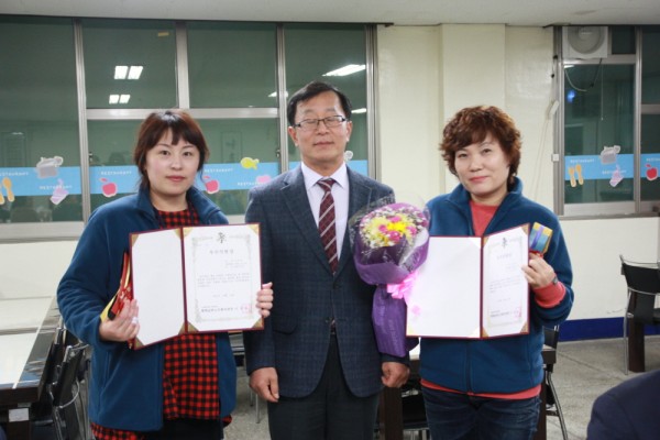 우수직원 표창: 신성희 간호조무사, 조성순 조리사,
