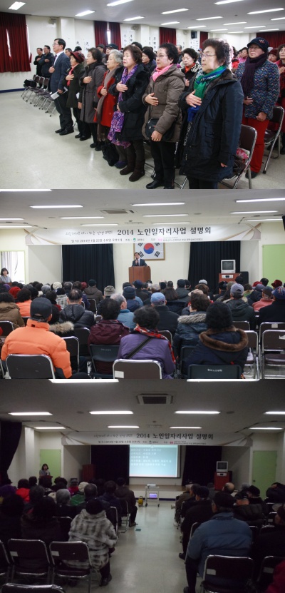 2014년 노인일자리사업과 관련하여 사업 내용에 대한 설명회가 진행되었습니다. 사업 설명회에는 모집일정, 모집 유형, 선발 방법등의 안내를 통하여 어르신들의 일자리 신청에 이해를 돕는 자리였습니다.