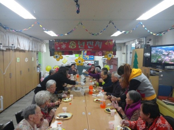 12월 생신을 맞으신 김옥* 어르신과 장순*어르신의 생신잔치와 한해를 마무리 하는 송년회를 진행하였습니다. 국선도 강사님의 변치않는 색소폰 연주와 복지부 선생님들의 기가막힌 풍물장단가락으로 더욱 더 흥겨운 잔치가 되었습니다. 생신을 맞으신 어르신분들께 다시한번 축하말씀 드리고 후원에 동참해주신 관계자분들께도 깊은 감사의 말씀드립니다.