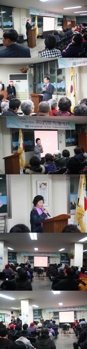 2013년 실버인력뱅크 어르신 자원봉사 최종 평가회를 위 사진과 같이 진행하였습니다. 한 해 동안 열심히 활동해주신 어르신들께 감사드리며 내년 한해도 활발한 활동 부탁드립니다.