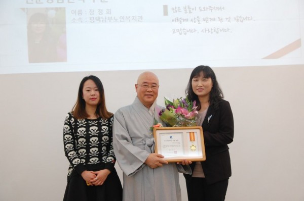 각 부문별 시상에서 평택시 노인자살예방센터는 전문상담인력부문의 유공표창을 수상하였습니다.