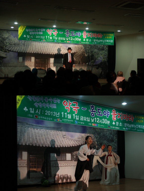 *내용: 경기문화재단에서 초청하고 성철예술단이 공연하는 악극 "홍도야 울지마라"가 평택남부노인복지관 2층강당에서 펼쳐졌습니다.