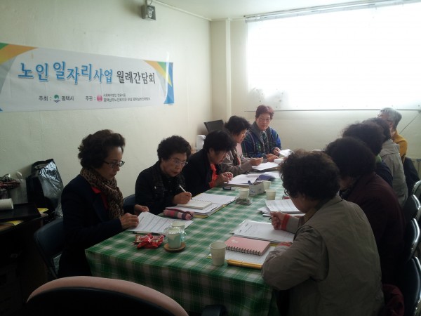 - 내용: 유형별 일자리활동이 매우 순조롭게 진행되고 있습니다. 어르신들 또한 적극적으로 참여해 주시고 매월 진행되는 월례회의에 많은 관심을 주셔서 감사하다고 말씀드렸습니다.