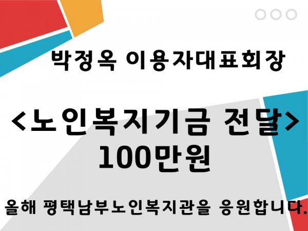 (후원) 박정옥이용자대표회장 노인복지기금 전달 페이지 정보 작성자 평노 작성일20-01-07 15:35 조회1,137회 댓글0건 관련링크 이전글 다음글 목록 본문 . 댓글목록 등록된 댓글이 없습니다. 이전글 다음글 목록