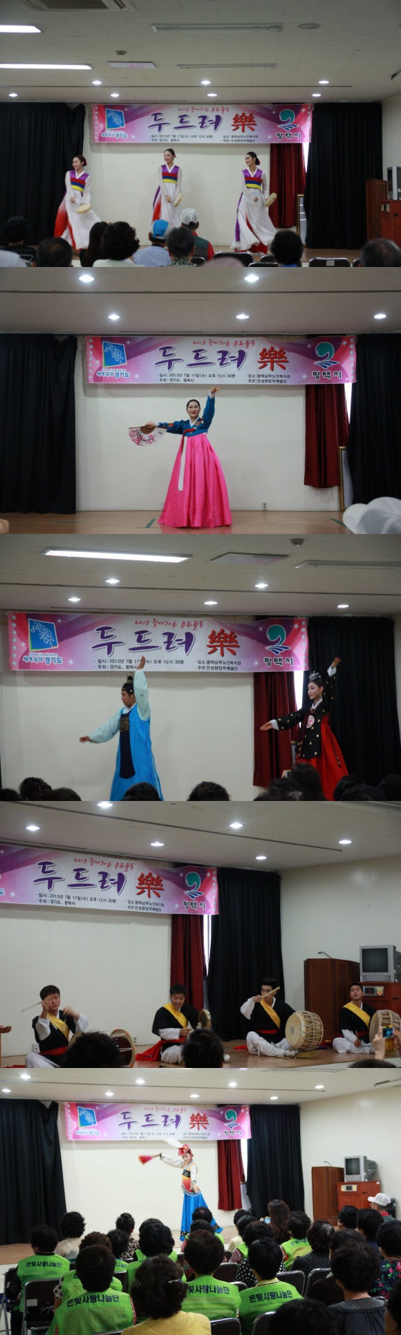 * 내용: 평택시에서 주최하는 찾아가는 문화활동으로 안성향당무예술단에서 방문해주셔서 어르신들께 흥겨운 예술문화공연을 보여주셨습니다. 특히 듣고만 있어도 어깨가 들썩여지는 풍물공연에서는 어르신들이 중간중간 환호를 보내주시며 즐거워하셨습니다.