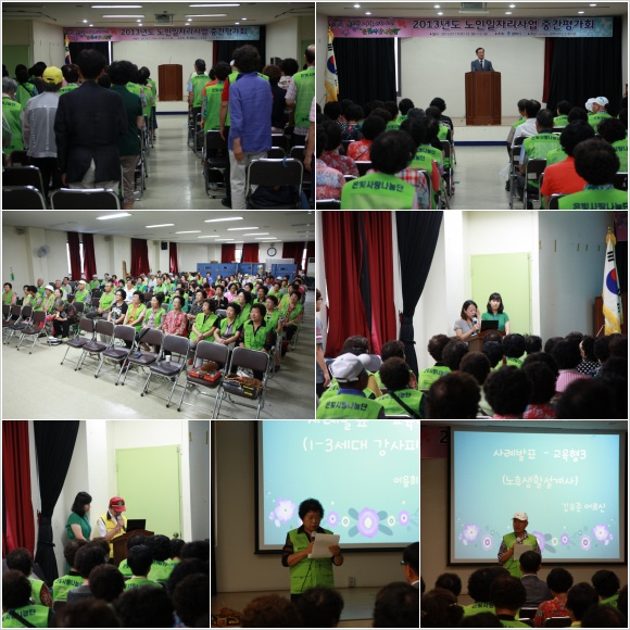2013년 노인일자리사업 중간평가회가 있었습니다. 날씨도 더운데 열심히 활동해주시는 어르신들께 감사의 말씀 드리며 사례발표를 해주신 신각균, 이용희, 김유준 어르신께도 감사의 인사말씀 드립니다.