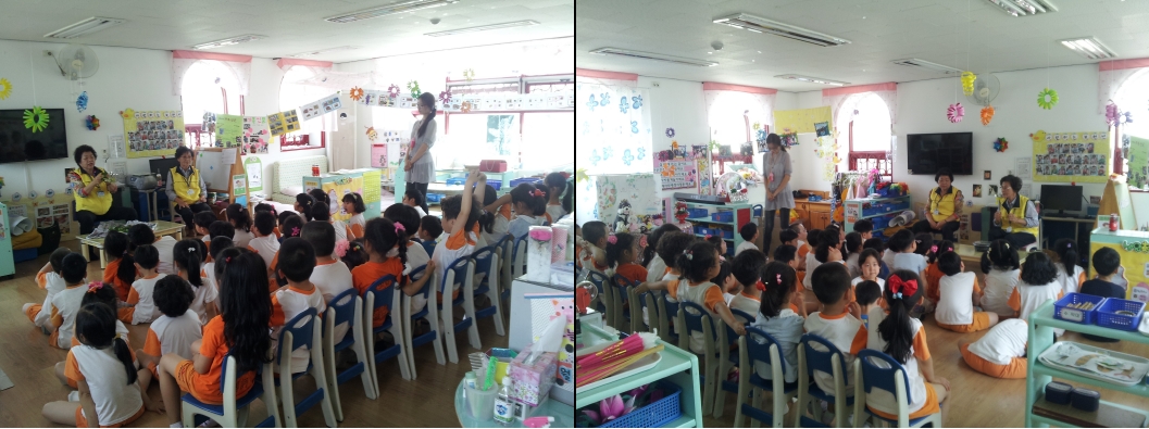 수업이 시작하기 전과 후에 손유희와 동요를 하여서 아이들이 더 좋아했습니다.