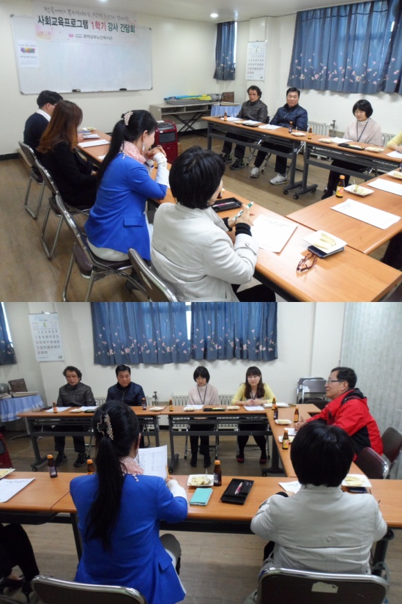 *내 용 : 2013년 1학기 사회교육 강사 간담회가 4월 10일에 진행 됐습니다. 바쁘신 일정 속에서도 간담회에 참석해주신 강사님들 감사드리며, 간담회에서는 사회교육 1학기 일정 및 발표회 진행에 대한 의견을 나누는 시간이 되었습니다. 또한 함께 저녁식사를 나누며 친목도모의 시간을 마련되었습니다.