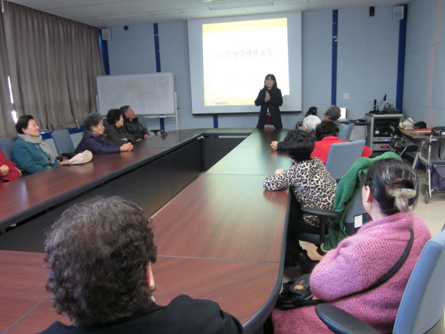2013년 3월 15일 오전 10시30분 부터 1시간동안 자살예방교육을 팽성노인복지관 회의실에서 실시하였습니다.
