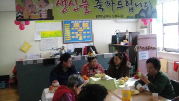 윷놀이와 만두 빚기로 한시간이 훌쩍 지나고, 곧이어 이계명 어르신의 생신잔치를 진행하엿습니다.