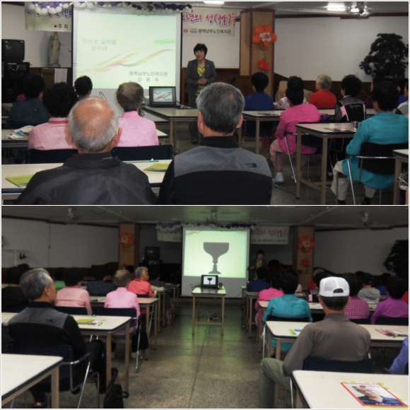 보건복지부에서 위탁받아 한국노인종합복지관에서 지원하는 사업의 일환으로 경기남부 성상담센터 거점기관인 평택남부노인복지관에서 "건강한 노년의 성을 위하여"라는 주제로 특강을 무료로 지원하였습니다.