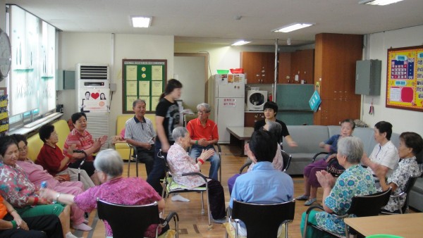 음악CD와 에그쉐이커를 이용하여 팀을 홍팀,청팀 으로 나누어 준비한 음악을 틀어놓고 에그쉐이커를 자신의 손에서 옆 사람의 손으로 옮기며 팀원들이 생각한 동작들을 응용하여서 음악이 끝날 때 까지 옮기는 활동을 계속한다. 첫 번째 음악이 끝나면 두 번째로 준비한 음악을 이용하여 한사람이 자신이 생각한 동작을 하고 나머지 팀원들은 그 동작을 따라하는 활동을 모든 팀원이 한사람씩 차례로 돌아가며 반복한다.