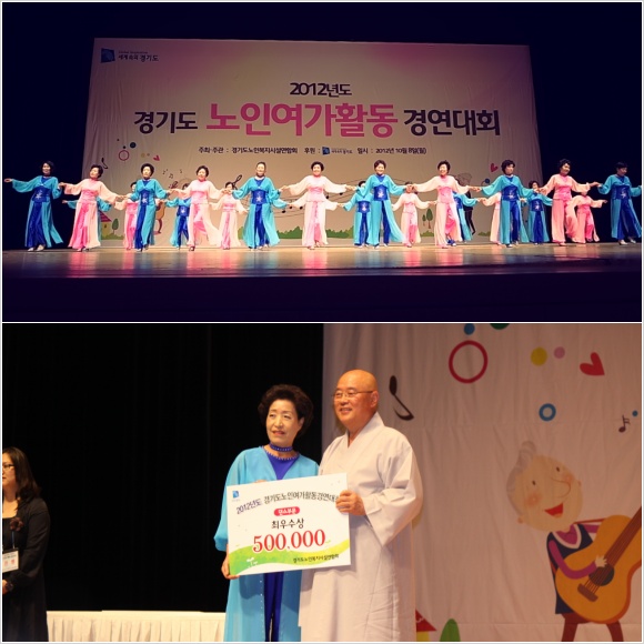 그결과 평택남부노인복지관 씽씽댄스동아리팀이 댄스부분 최우수상과 상금50만원을 수여하는
