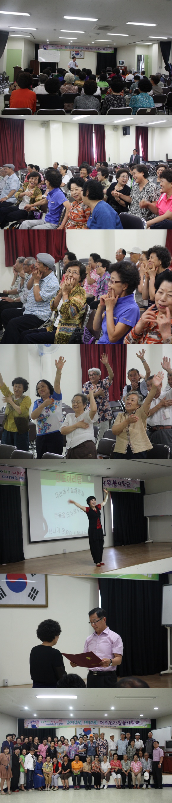 +내 용 : 2012년 제10회 어르신자원봉사학교가 진행됐습니다. 총 20시간 과정으로 진행되며 3월부터 자원봉사 계획하기, 직무교육, 현장봉사 등으로 진행되어 7월에 수료됩니다.