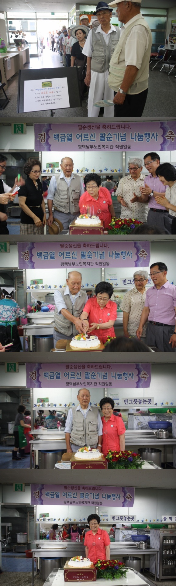 ■내 용 : 평택남부노인복지관 후원자 백금열어르신께서 팔순을 맞아, 팔순기념 나눔행사를 경로식당에서 가졌읍니다.