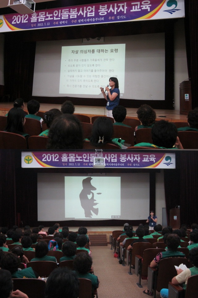 2012년 7월 13일 오후 2시부터 2시간여에 걸친 시간동안 노인상담 및 자살예방에