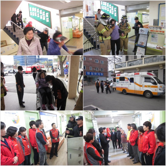 2012년 4월 20일(금) 14:00~ 어르신, 직원 대상으로 비전 소방센터에서 소방관8분과 함께 14:00~15:00분에 소방합동훈련을 실시하였습니다.