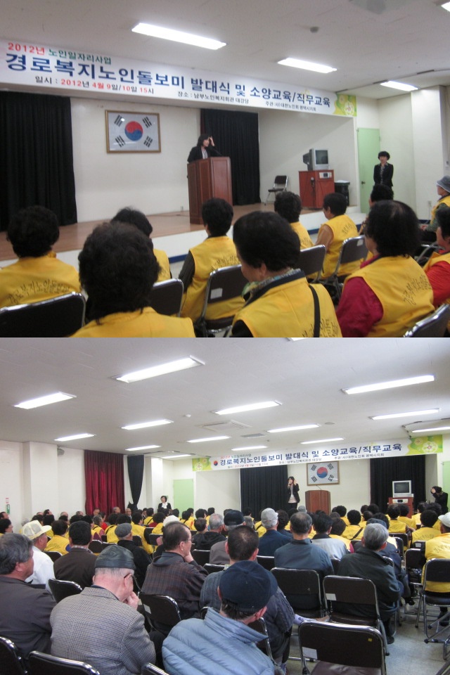 2012년 4월 9일 오후3시부터 노인지회에서 노인일자리 참여자를 대상으로 자살예방교육을