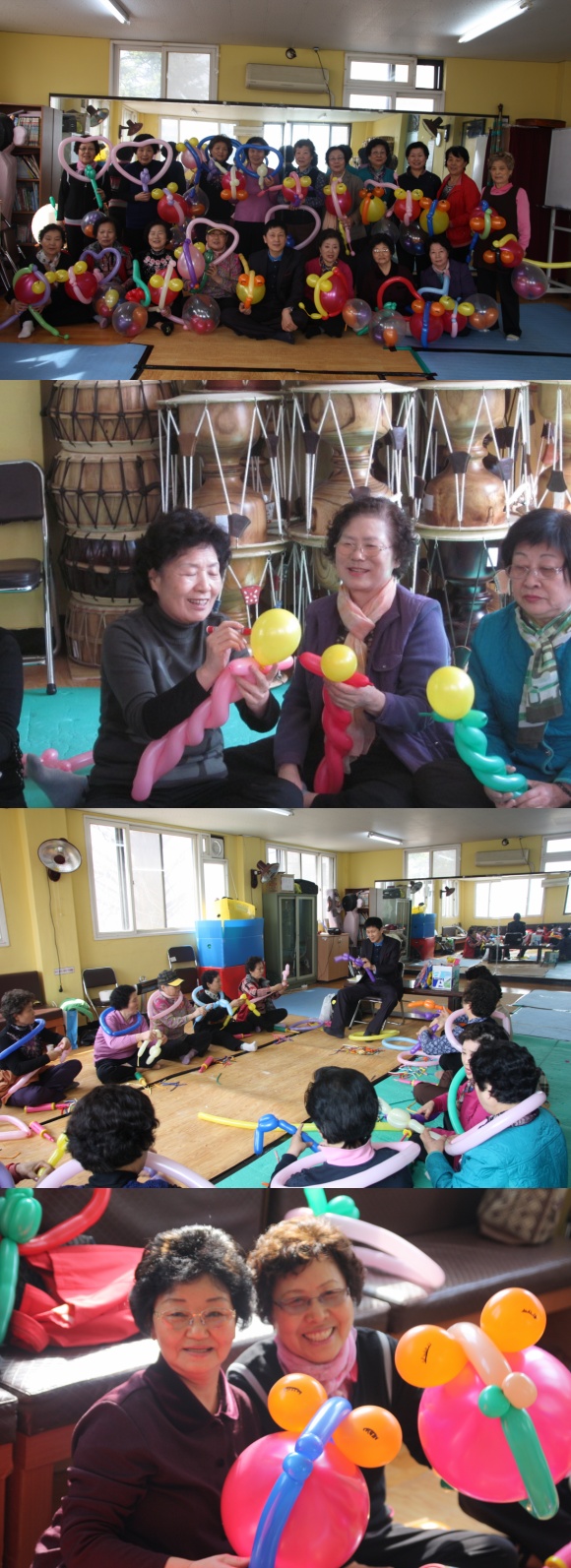 + 내 용 : 2012년 어르신자원봉사학교 풍선봉사팀 직무교육이 3회에 걸쳐 진행되었습니다. 최은규 강사님과 함께 어르신 총 20명이 모자,금붕어,포도송이,기린 등 다양한 풍선을 이용한 만들기 교육이 진행되었습니다. 앞으로 어린이집, 유치원 등 아이들에게 교육활동이 진행될 예정입니다.