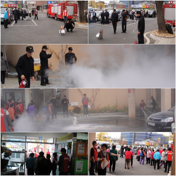 훈련내용은 실내에서 소화기 사용법과 화재시 대피방법을 실시 하였고