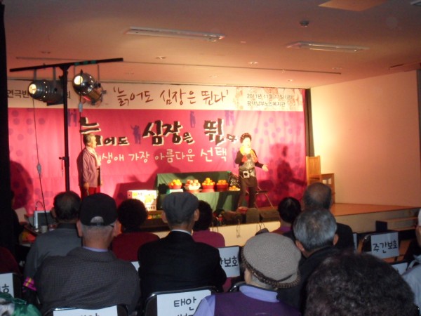 연극 제목은 '늙어도 심장은 뛴다'. 약 250여명의 어르신들이 관람하러 오셨습니다.