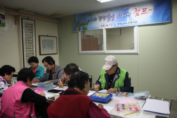 ■ 내용: 색채심리미술치료사 김만섭 강사님의 진행으로 자아존중감향상을 위한 미술치료 집단프로그램을 진행하였습니다. 이 프로그램은 개인 스스로의 갈등과 자기표현법을 배워 자신과 다른 사람에 대한 존중감 을 향상 될 수 있도록 하여 노년기 타인에 대한 이해와 나의 삶에 대한 이해을 돕고자 하기 위함입니다.