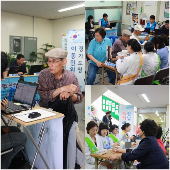 본 복지관은 지난 5월 26(수) 10:00~ 15:00 경기도청에서 실시하는 민원행정의 새로운 변화로 시간과 장소에 구애받지 않고 지역민들의 애로사항(건강, 세무, 금융 등 전반 상담)을 듣고 민생현장으로 직접 달려가서 해결해 주는 더욱 향상된 민원서비스를 제공하였습니다. 이런 서비스가 일회성이 아닌 지속성을 갖고 서로가 신뢰감을 쌓아 윈-윈할 수