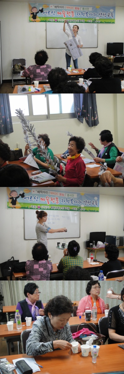 마술자원봉사자 양성교육 페이지 정보 작성자 평노 작성일11-05-31 09:53 조회1,651회 댓글0건 관련링크 이전글 다음글 목록 본문 매주 목요일 마술자원봉사자 양성교육이 진행됩니다. 신문지를 이용한 페이퍼 트리 마술과 물이 쏟아지지 않는 바리스타컵 마술을 배웠습니다. 과학이 숨어있는 신기한 마술의 세계에 매직아이봉사단 어르신들이 푹 빠지셨습니다. ^^ 댓글목록 등록된 댓글이 없습니다. 이전글 다음글 목록
