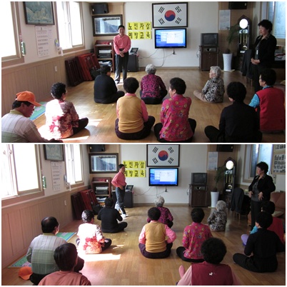 2011년 5월 3일 15:00~ 포승읍 원정4리 경로당에서 노인자살예방교육을 실시하였습니다.