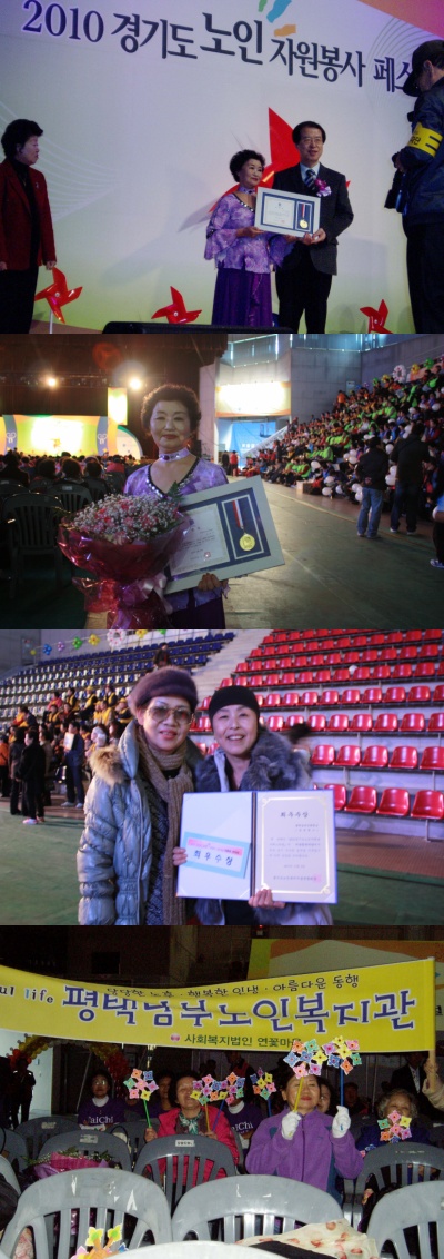 배태분어르신께서 우수노인자원봉사 단체 도지사상을 받으셨습니다.