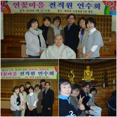 이번연수는 연꽃마을의 어제, 오늘 그리고 내일이라는 주제를 가지고 각현스님의 강의를 시작으로 하여, 앞으로 우리 법인의 미래에 대한 전략 및 직원들의 마음가짐에 대한 내용을 가지고 하였습니다.