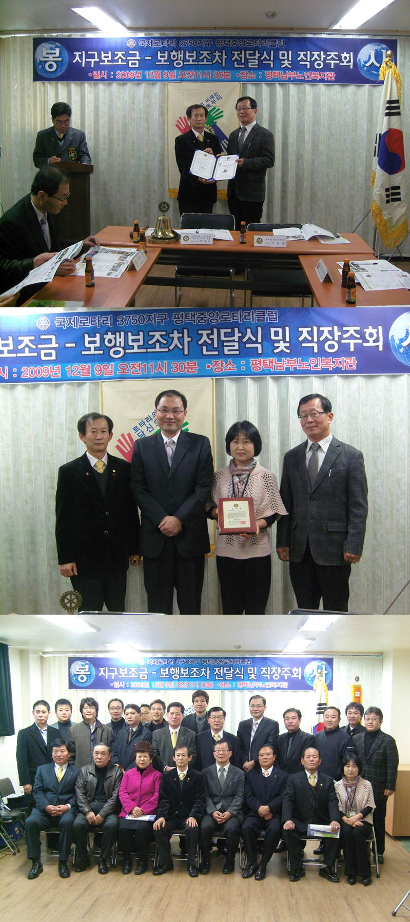 "평택중앙로타리클럽 보행보조기 전달식 및 직장 주회"를 개최하였다.